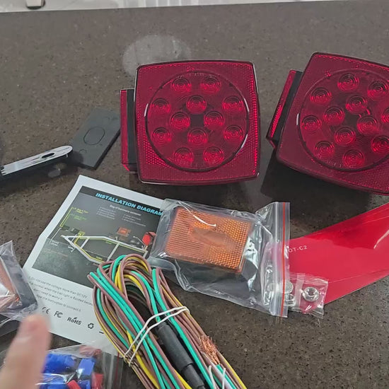 The Perfect Trailer Light Kit is a best-seller, providing everything needed for your trailer lighting: two 12V LED tail and turn signal lights, two amber clearance lights, a license plate bracket, wiring harness, and stainless steel hardware for easy installation. IP68 fully submersible and waterproof, the LEDs are protected from water damage and short circuits. With drainage for extra protection, it’s corrosion-resistant and built for all weather conditions. Compliant with DOT FMVSS108 standards, these premium LED lights last 30-40 times longer than incandescent bulbs, saving you time and money. Ideal for 12V DC vehicles up to 80 inches wide, this kit fits most trailers, boats, trucks, and RVs—perfect for holidays like Thanksgiving, Christmas, or New Year.