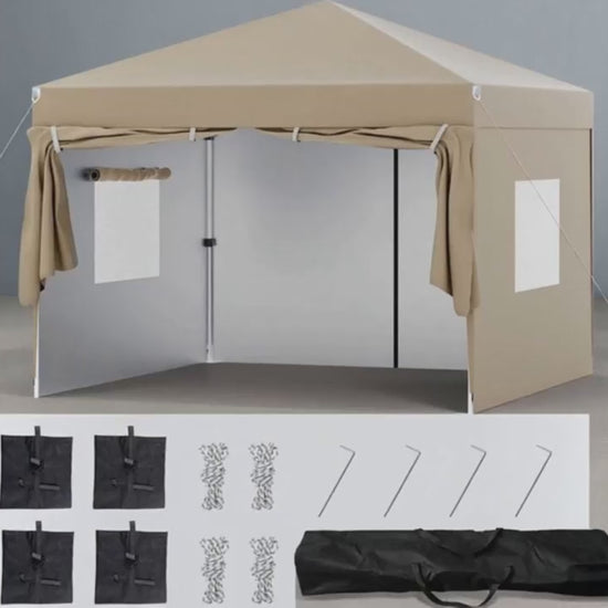 • STURDY & DURABLE】—The outdoor canopy tent with 4 sidewalls features a premium, sturdy steel frame coated with rust-resistant paint, significantly enhancing structural stability. Highly waterproof and rust-resistant, it's a durable, waterproof tent. Includes 4 sandbags, guy ropes, and stakes to securely anchor the canopy tent to the ground, ensuring peace of mind even in light winds or sudden impacts. *Note: Do not set up in strong winds.