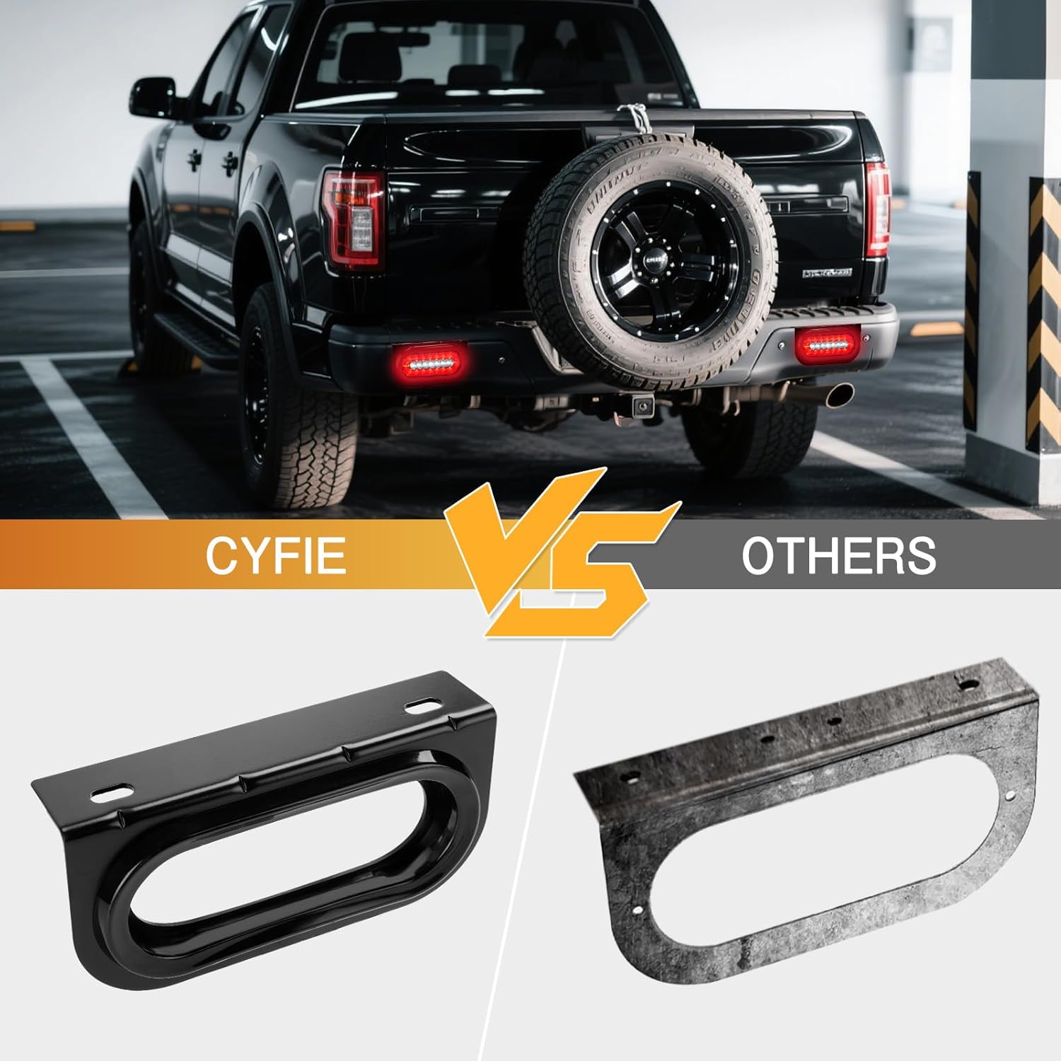 - UPGRADED UNIQUE DESIGN: Cyfie trailer tail light has unique “ears” on its two sides, upgrade notches on the inside of grommet. These help the light and grommet fit perfectly and firmly on mounting bracket, and the 3 wires attaches tightly onto the light. Shake proof, there will be no worries of loosing lights or wires