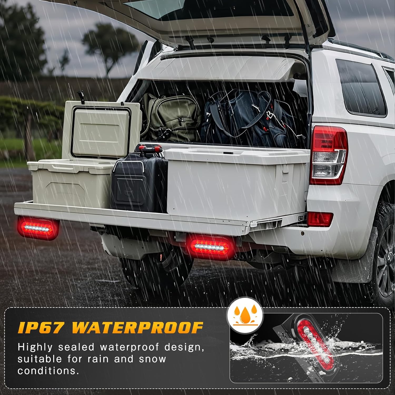 - IP67 WATERPROOF & RUST-PROOF: The oval LED trailer light is highly silicone sealed, IP67 waterproof rating, always be ready for different kinds of weather attack. The mounting bracket is a durable metal coated with high-quality black powder. It is not easy to lose paint and rust
