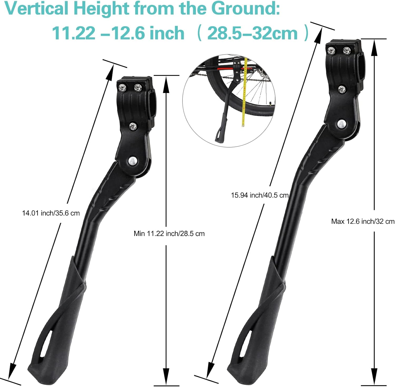 - ADJUSTABLE LENGTH - The kids bike kickstand is easy to attach and extend by providing Allen wrenches in seconds. The bike kickstand for 24-29 inche wheel bike. It’s adjustable to different heights by a 4mm Allen wrench to fit a variety of frame sizes so that you can pick the exact height you need.