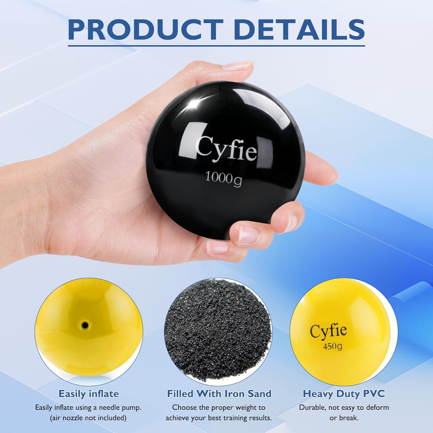 - Size: Red: 2.8 inches (72 mm) / 4.6 oz (130 g), Yellow: 3.2 inches (81.3 mm) / 15 oz (450g), Black: 3.74 inches (95 mm)/35 oz (1000 g). Material: PVC, iron sand