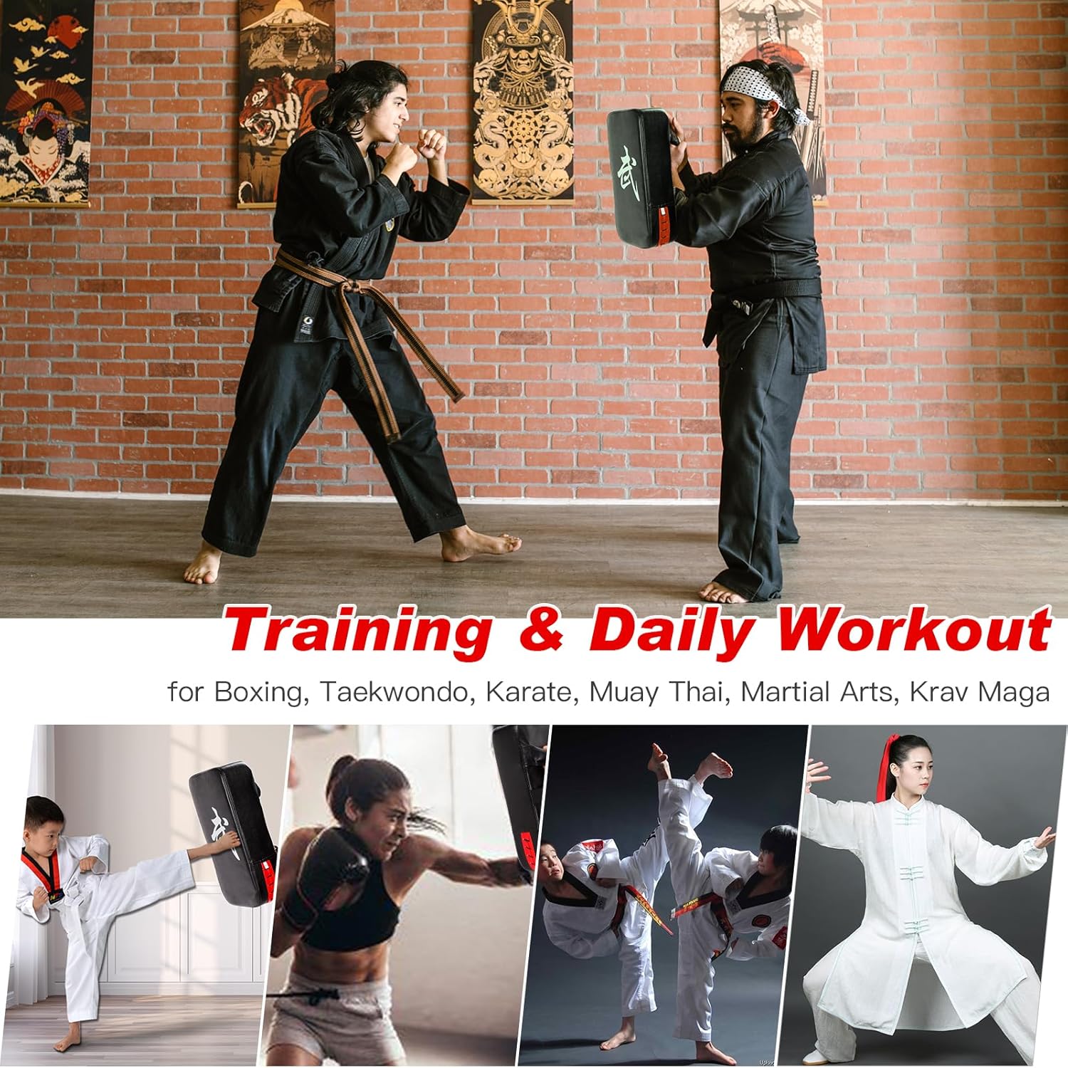 • Boxing Kicking Pad: With larger surface area of 15.5''x7.9''x3.7'', Muay thai kick pad is made of upgrade PU leather and thicken sponge inside, which is enough comfortable and safety to absorb heavy strikes.